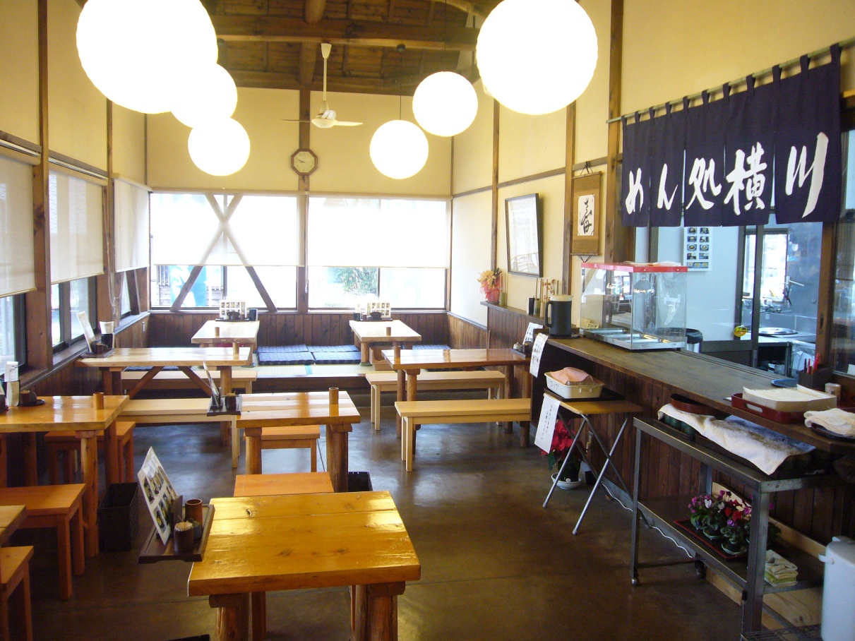 食堂の「めん処横川」では、椎茸を使っためんつゆのそば、うどんと野菜山菜の天ぷらが人気です。