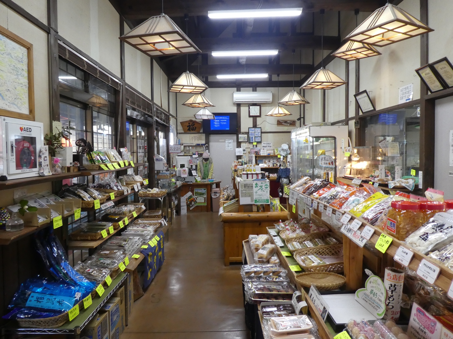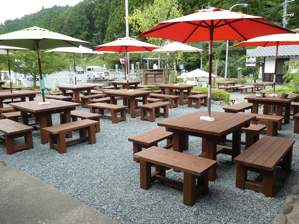 秋葉街道(国道362号)沿の山間にあり、オープンテラス風の野外席は気軽に休憩できます。地元の野菜や山菜、特産の原木椎茸や天竜茶、手づくりの農産加品を購入できます。