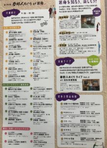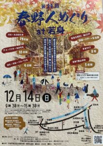 第24回春野人めぐりat若身2025.11.13 Post Share Hatena Pocket RSS feedly Pin it この記事のタイトルとURLをコピーする第24回「春野人めぐり」が開催されます。今回はいつもと変わって春野町の若身地区に春野人が集まっての開催となります。日時は12月14日(日)9:30~15:30にて。場所は天竜区春野町堀之内の若身地区です。 Post Share Hatena Pocket RSS feedly Pin it この記事のタイトルとURLをコピーする 第50回はるの産業まつり前の記事